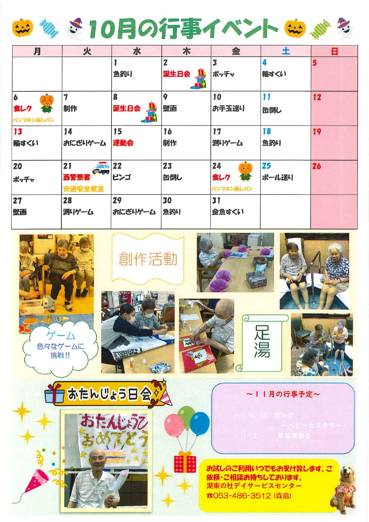 心地よい秋晴れの日々が続いております。 朝晩の風が涼しく、秋の訪れを実感する頃となりました。 10月は西警察署の慰問がありました。 モニターや劇を通して防犯対策について 分かりやすく説明していただきました。 遅くなりましたが、 『湖東の杜通信』の10月号が完成しましたので、どうぞご覧ください。 ※クリックすると画像が拡大します 画像説明文