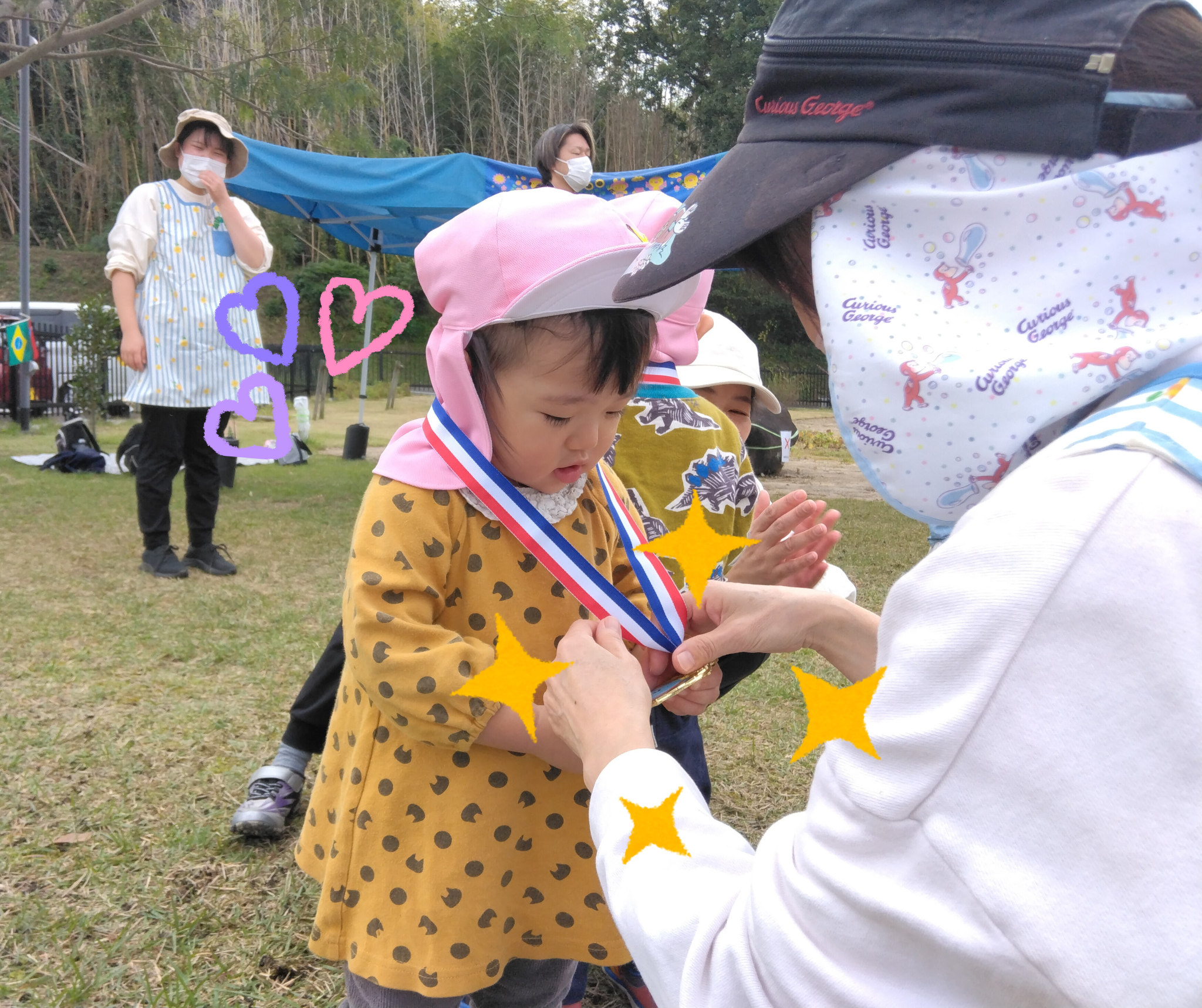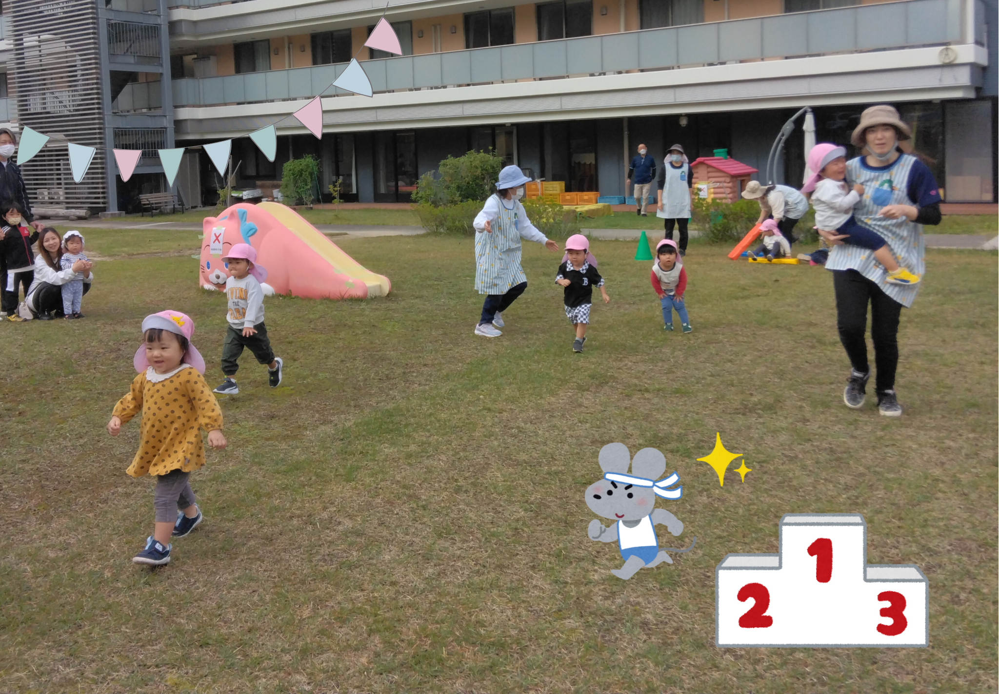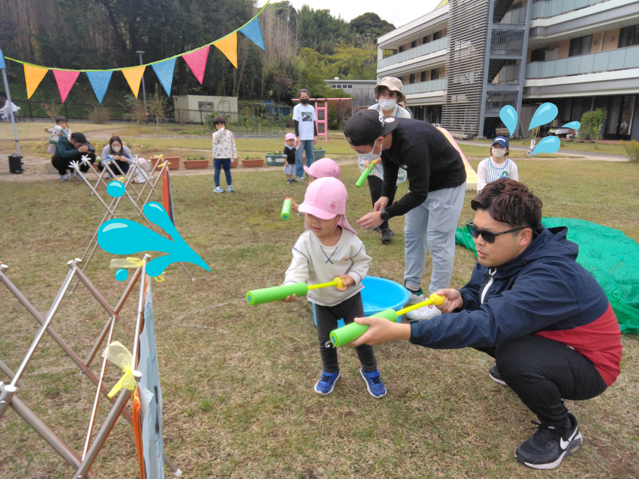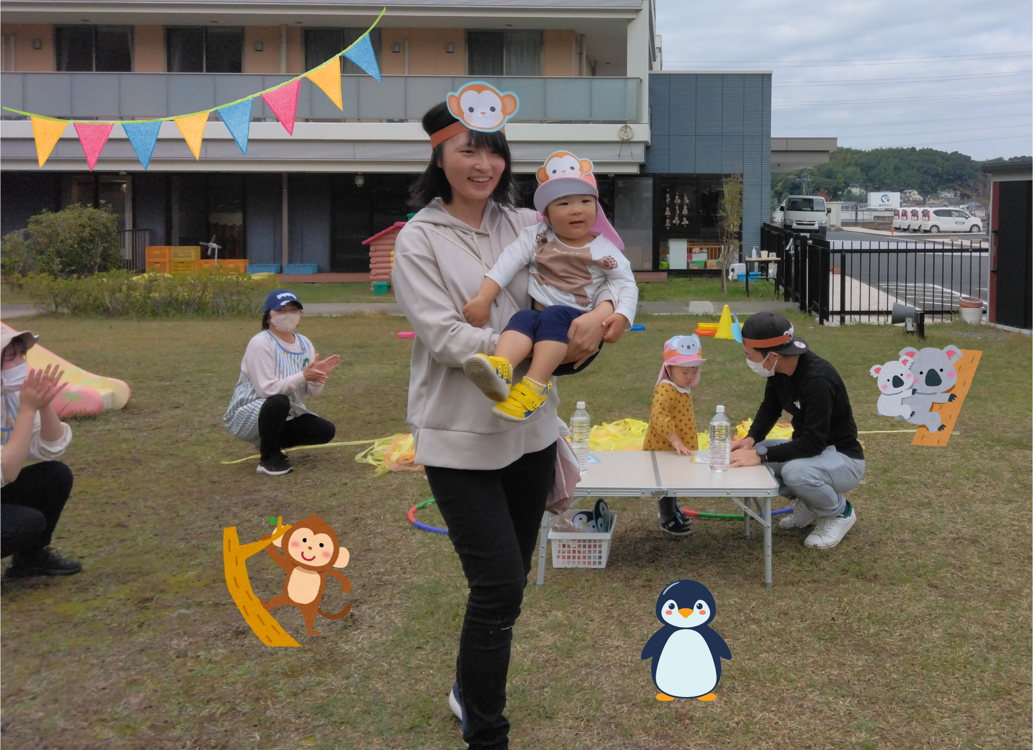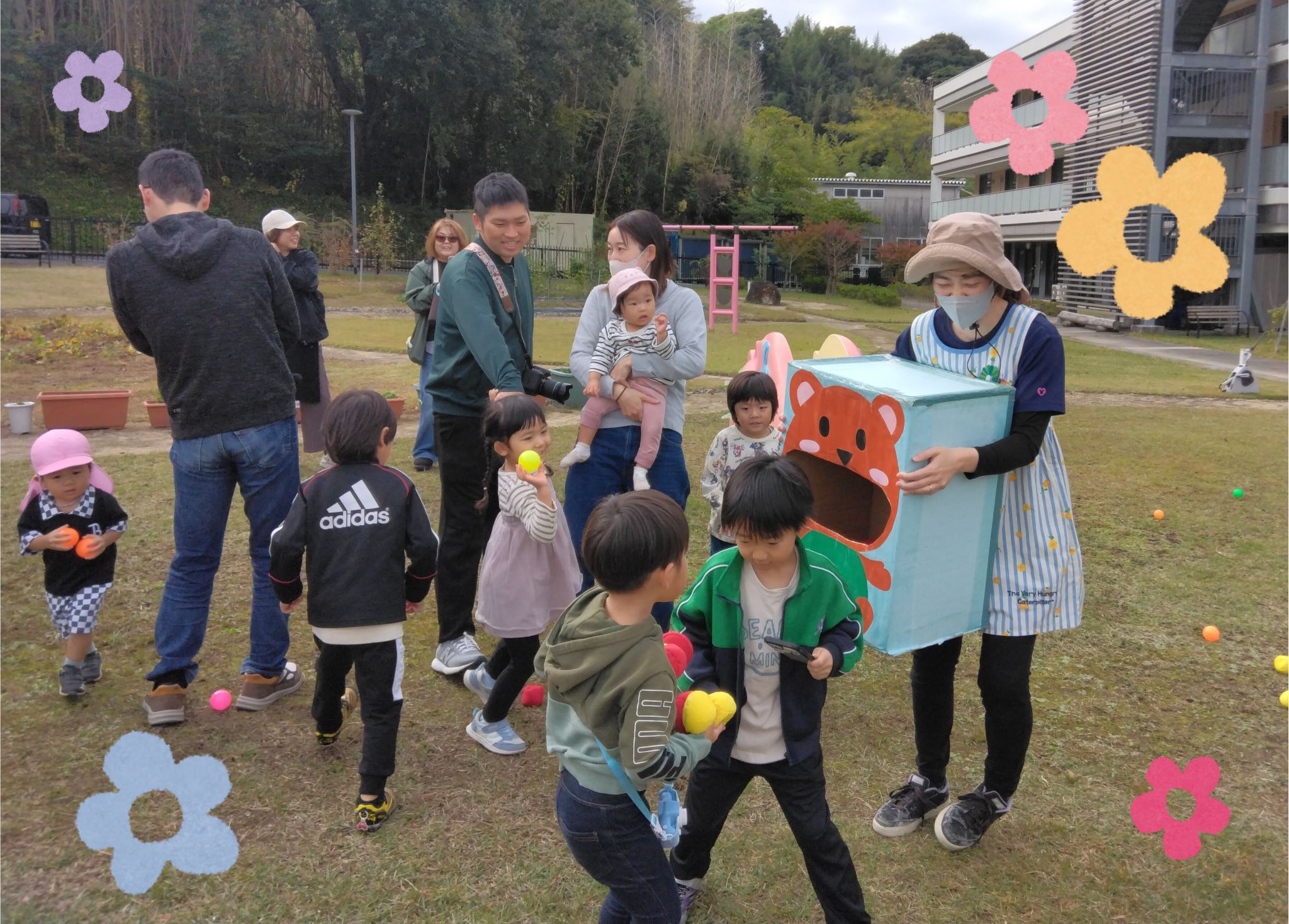 11月8日(土)に親子運動会&お芋掘りがありました。今年度から、お子様だけでなく保護者の方と一緒に身体を動かして楽しんでいただこうと”親子運動会”に名前を変更し、内容を考えていきました。いつもと違った雰囲気の中でも、保護者の方と一緒に体操をしたり、力を合わせて競争をしたりする姿はどの子も嬉しそうでした。運動会の後には園庭の畑で育てたさつまいもをみんなで掘りました。スコップや手で上手に土を掘って、沢山収穫出来ました。