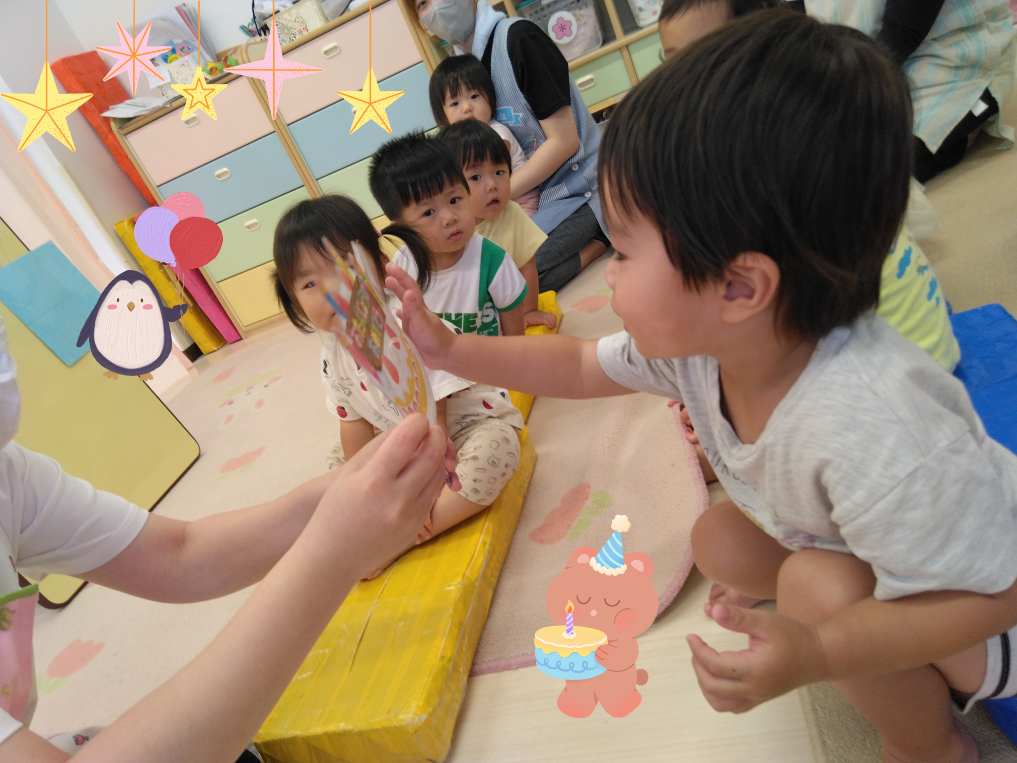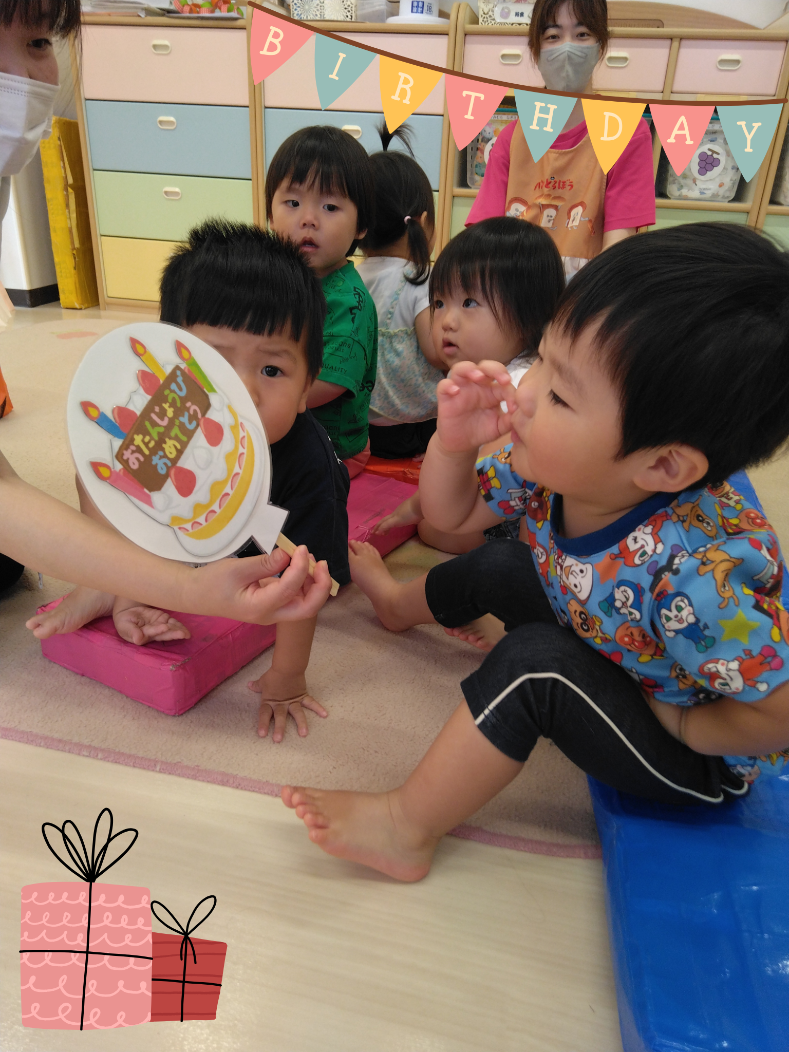9,10,11月の各月にお誕生会がありました。9,10月生まれのぱんだ組のお友だちは「あーなたのお名前は?」と名前を聞かれると元気に答えてくれさすがでした。3歳になったよ!と指を上手に立てて教えてくれる姿もとても可愛らしかったです。11月には2名のお友だちがお誕生日を迎え、担任の先生からプレゼントをもらってにっこり。みんなおめでとう❤